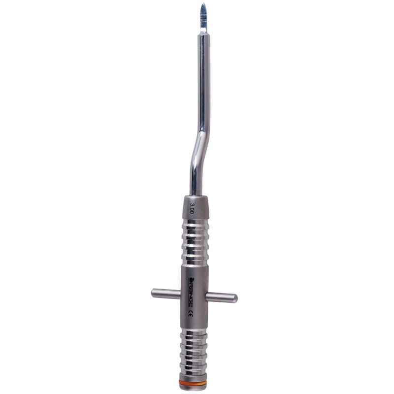Bone Spreader 3.0mm wide bayonet style bone spreader with depth marking and offset T-Bar Handle used for preparing bone. Dental Instruments
