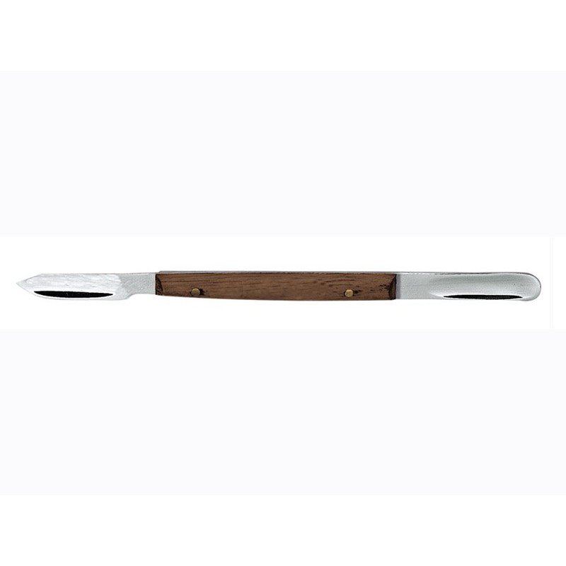 Lessmann wax knife with wooden handle. 12.5cm the blades are made of stainless steel whist the handles are polished wooden for extra strength. The taper ground hardened and tempered blades permit flexibility for safe and comfortable use.