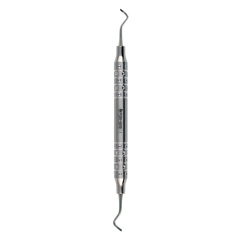 Margin Trimmer used to produce proper bevel on enamel margins made from stainless steel. Similar to a hatchet except the cutting edge angled and the blade is curved. All are made of high-carbon stainless steel, then hardened for the ultimate in sharp edge retention and durability. Margin Trimmers have unique, large diameter light weight handle for maximum comfort, reduced hand fatigue and increased control.